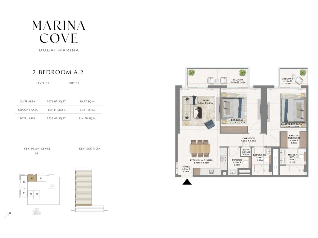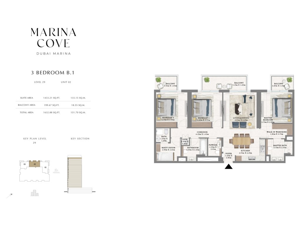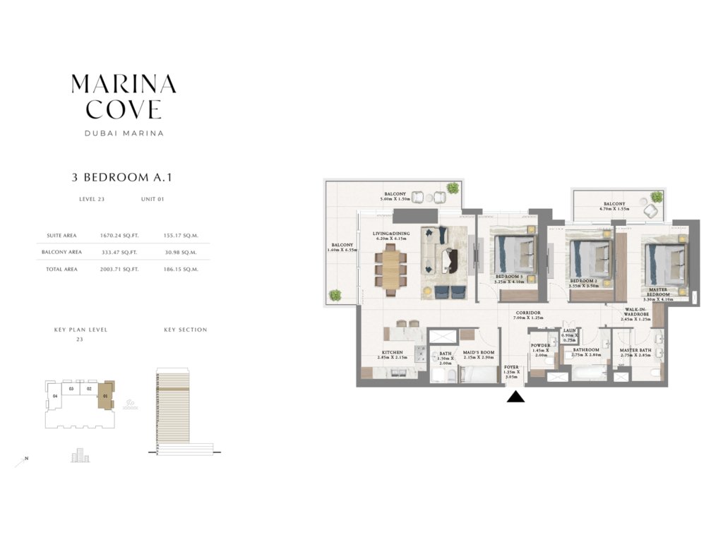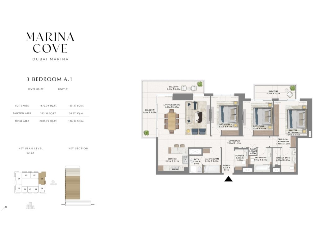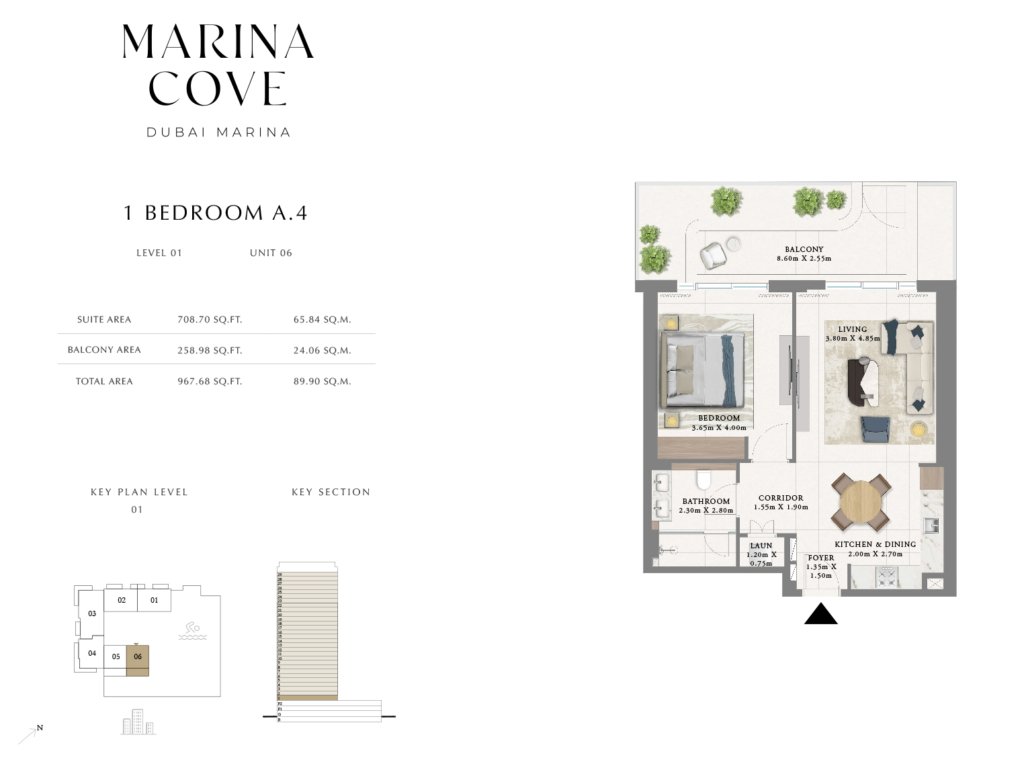 Strategically located, Marina Cove at Dubai Marina ensures the community provides easy connectivity to major highways and key landmarks in Dubai. The Dubai Marina is just 3 minutes away with the Jumeirah Beach only 5 minutes from the development. Moreover, the Palm Jumeirah, Emirates Golf Club, and the Mall of the Emirates are within 15 minutes of the community. Additionally, the Burj Al Arab is just a car ride away.