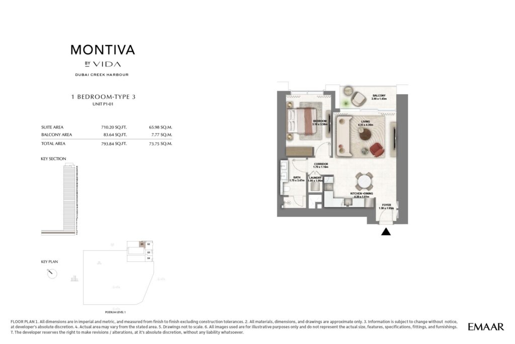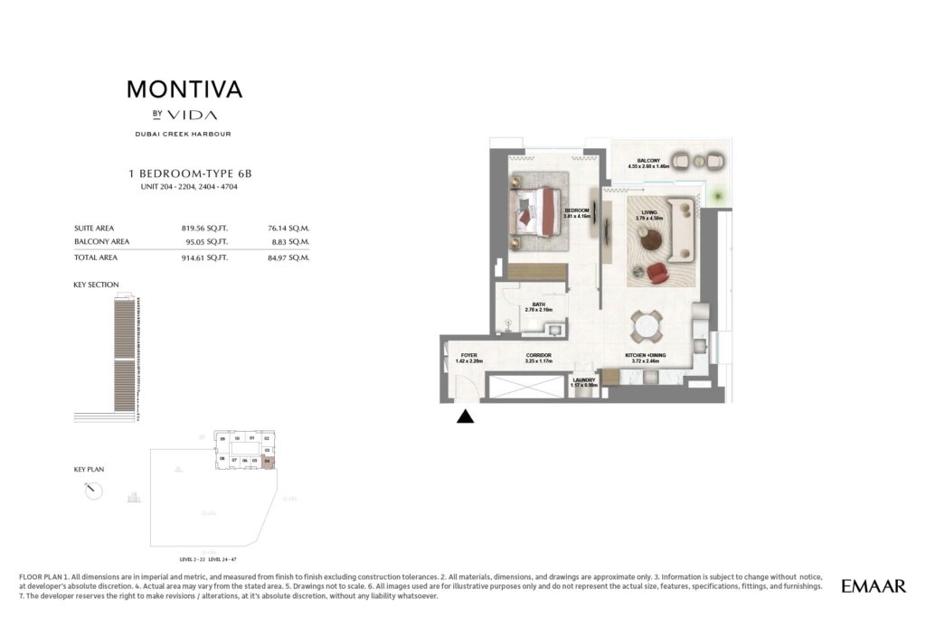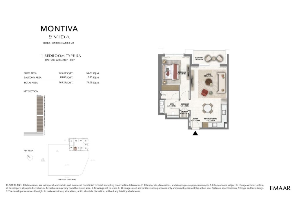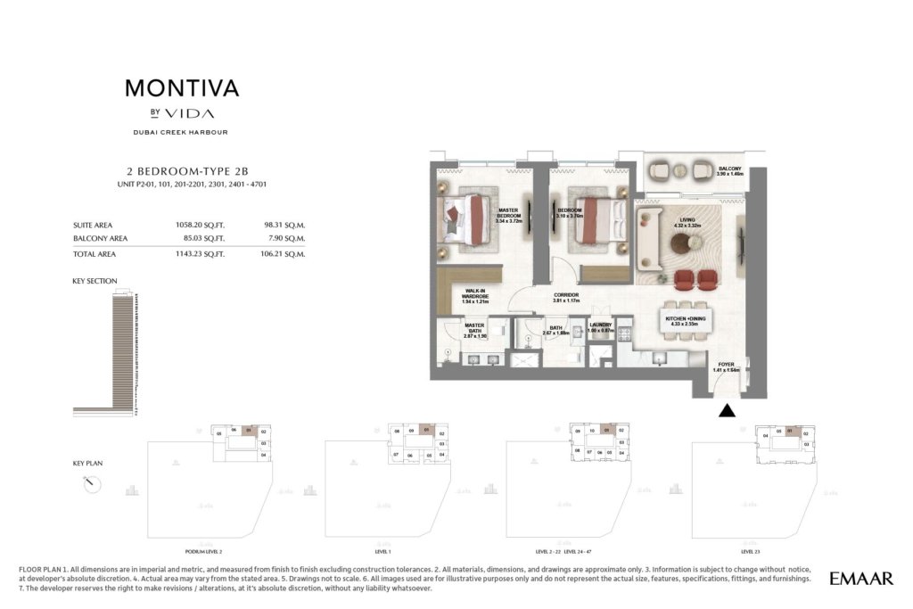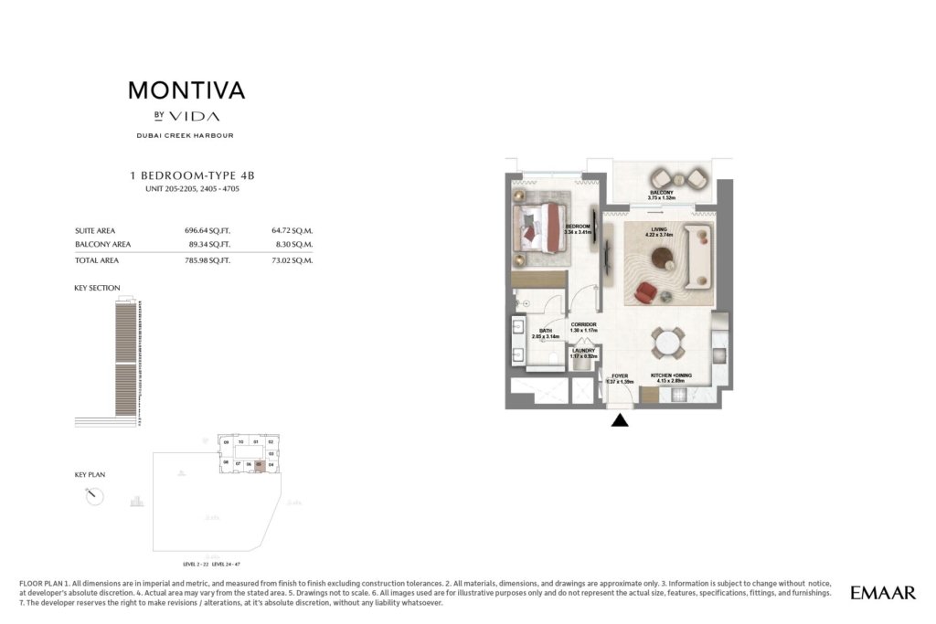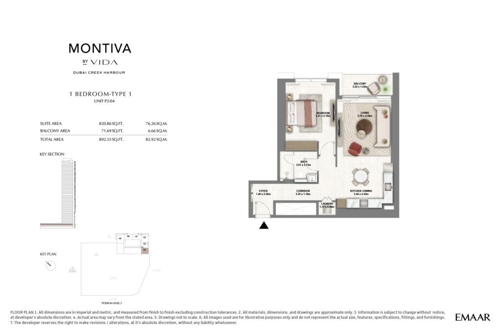 Montiva by Vida at Dubai Creek Harbour stands out in a space shaped by calm and tranquility. Residents are provided with world-class amenities including an infinity pool, sport park, community park, multi-sport court, running track, promenade retail, badminton court, and beautiful lawns. Additionally, well-established schools and hospitals in the vicinity make this development a great investment for families.