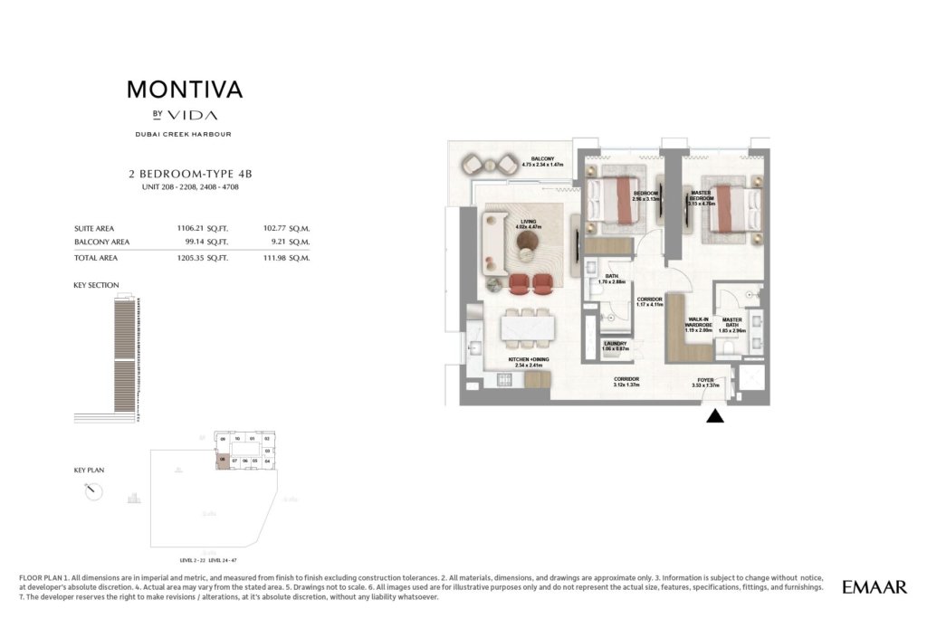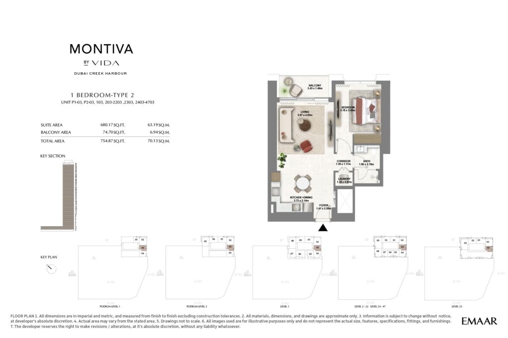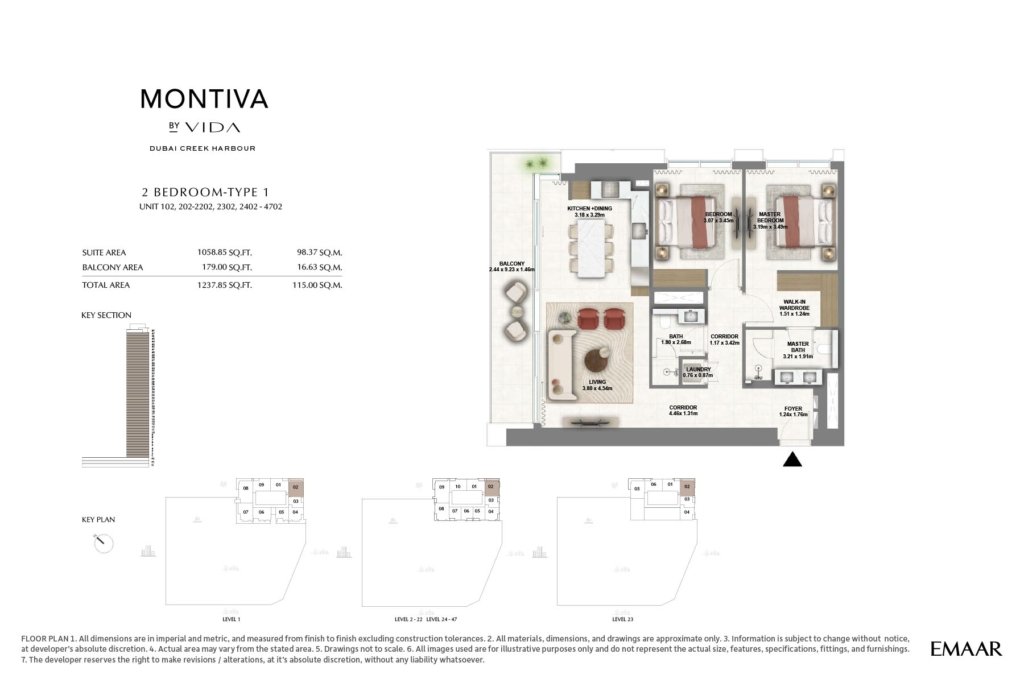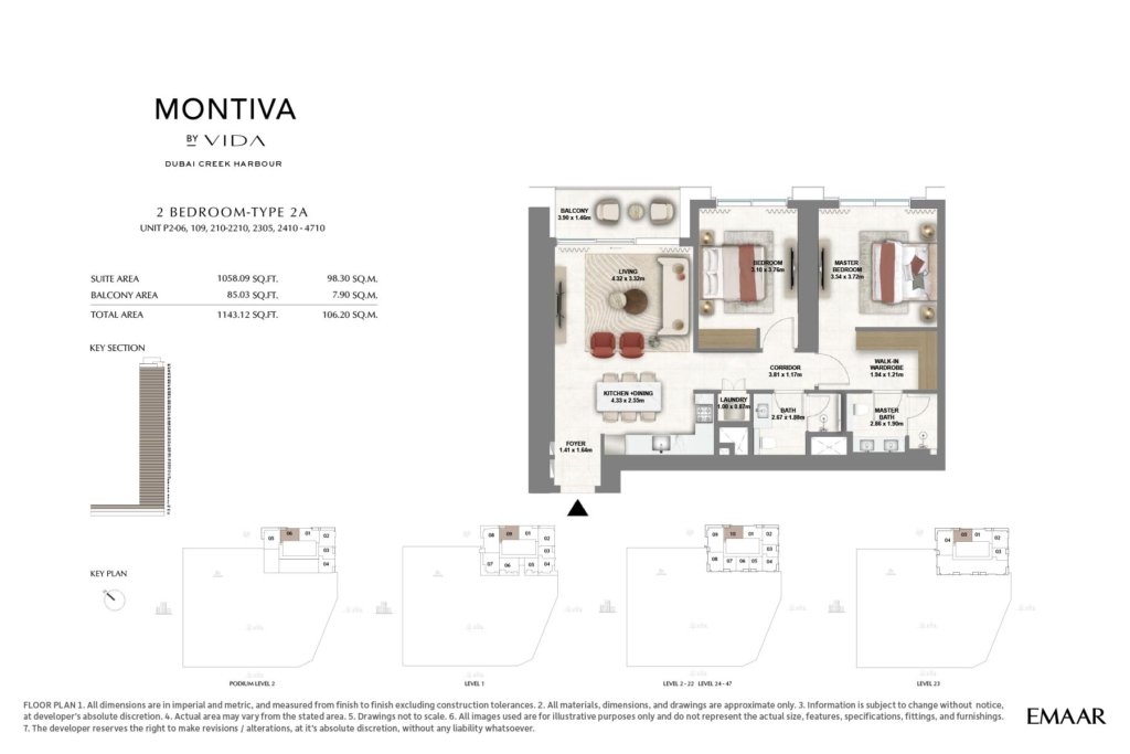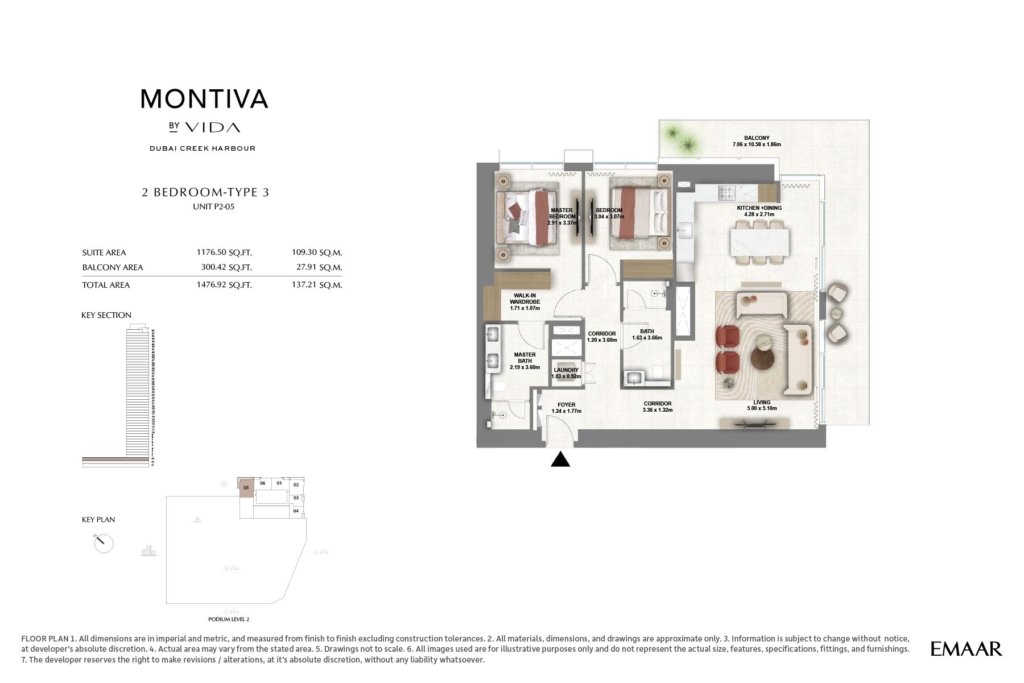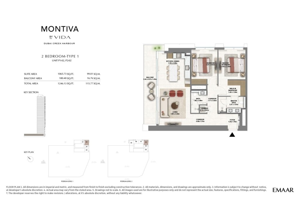 Montiva by Vida at Dubai Creek Harbour stands out in a space shaped by calm and tranquility. Residents are provided with world-class amenities including an infinity pool, sport park, community park, multi-sport court, running track, promenade retail, badminton court, and beautiful lawns. Additionally, well-established schools and hospitals in the vicinity make this development a great investment for families.