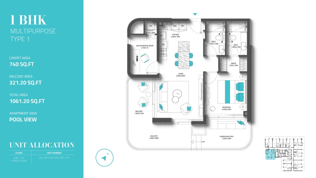 Reef 997 Residences presents meticulously designed floor plans that seamlessly blend versatility and elegance. Choose from inviting one- and two-bedroom apartments to luxurious three-bedroom duplexes and stunning four-bedroom penthouses. Each spacious interior features open-plan layouts that connect living, dining, and kitchen areas while ensuring bedroom privacy.