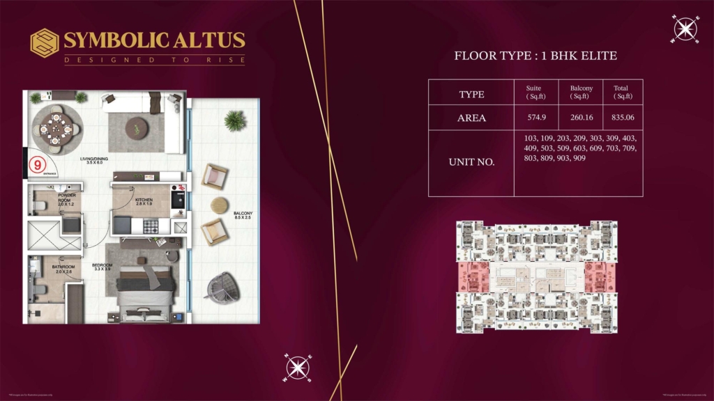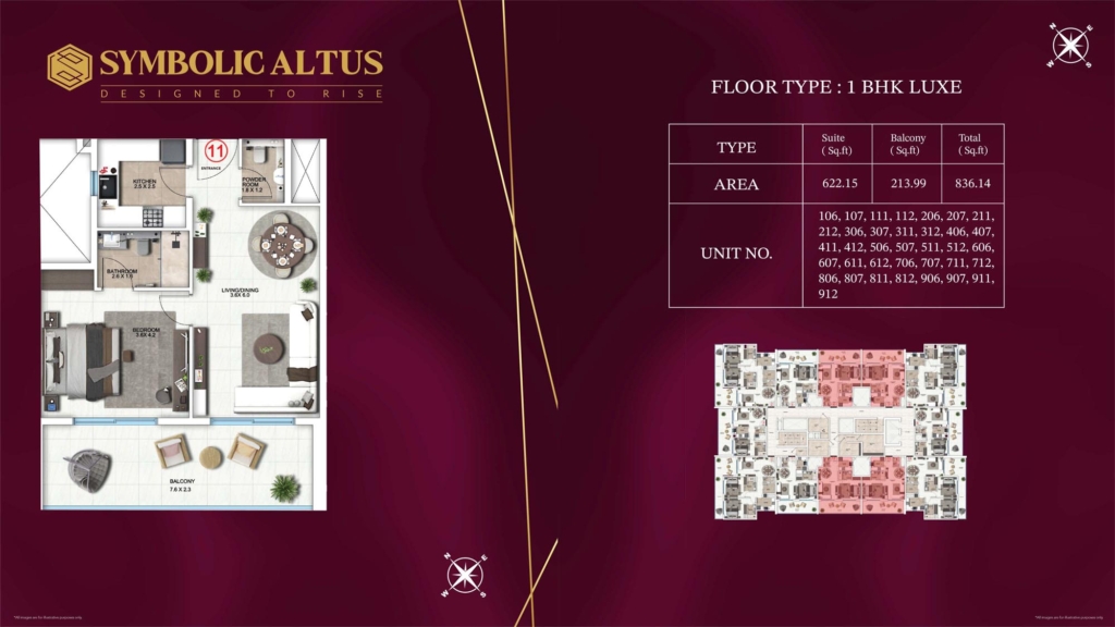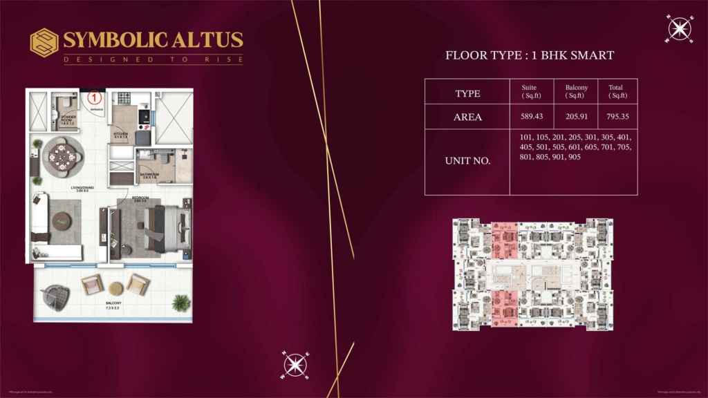 Symbolic Altus’ floor plan is designed for maximum space efficiency and maintaining elegance with comfort. The project features a variety of modern apartments in different sizes and styles to meet the needs of its residents. It’s a 9-floor-tall tower featuring a rooftop amenity zone and a total of 108 fully furnished residences.