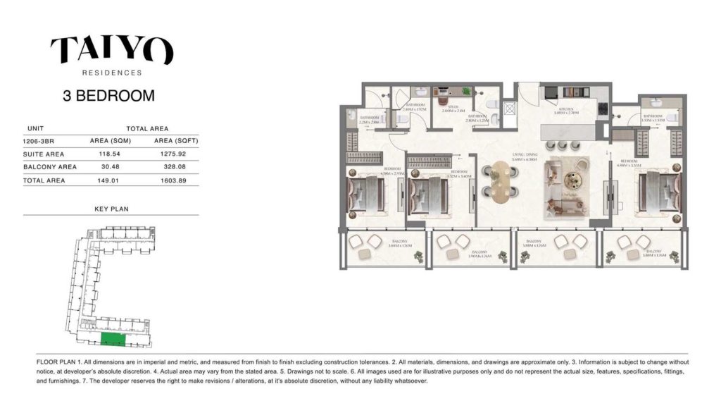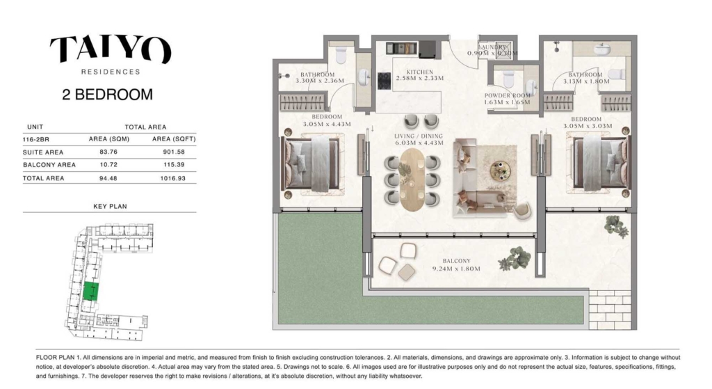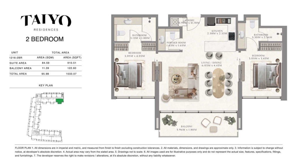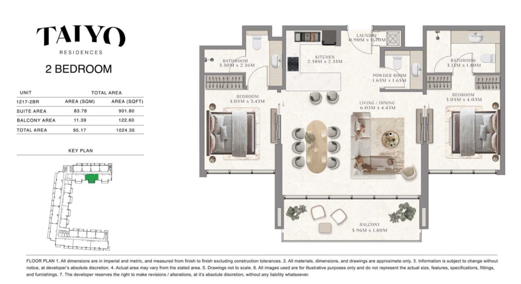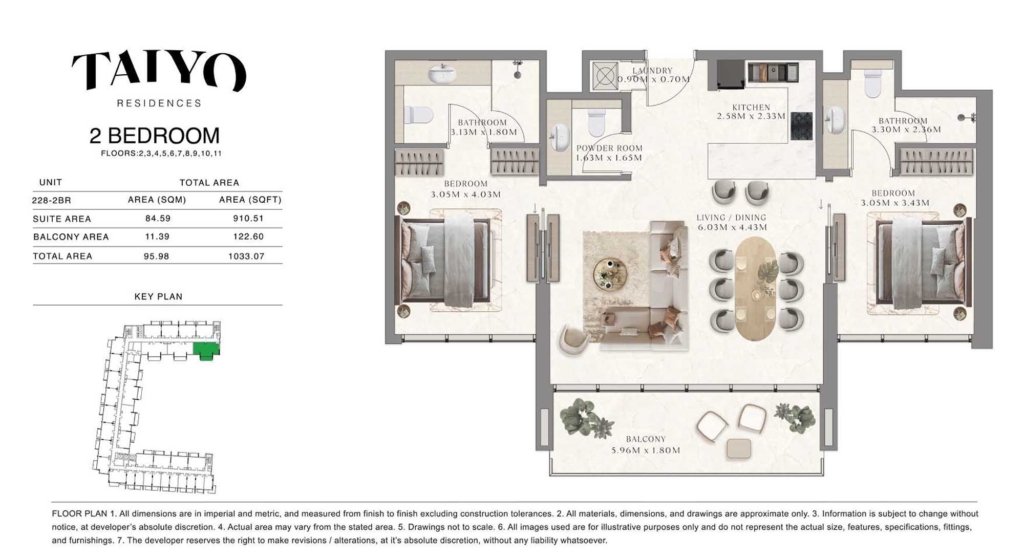 The Taiyo Residences at Wasl Gate is a Master Plan development that offers a prime central location and excellent transport links, allowing residents to enjoy a vibrant yet tranquil community.