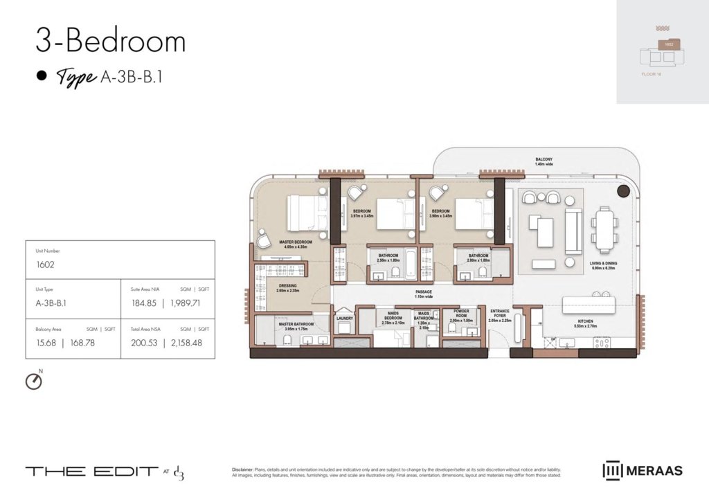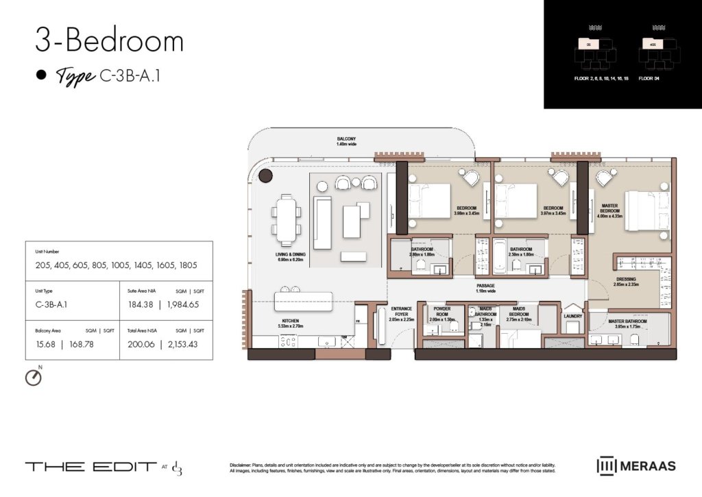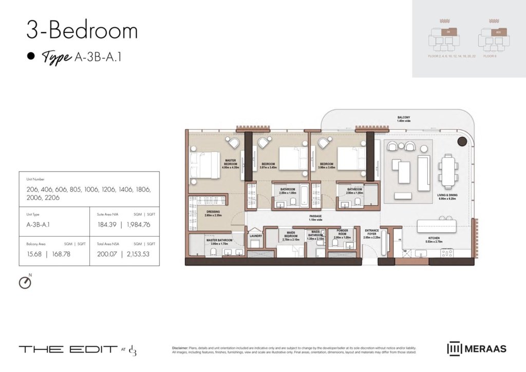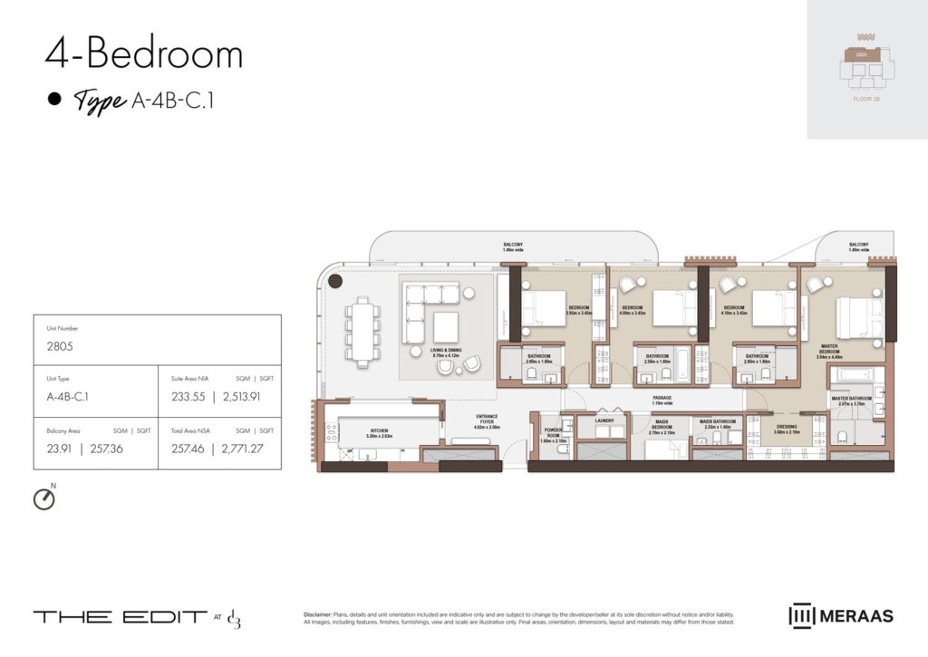 Enjoy connections at the doorstep at The Edit at D3 by Meraas, where popular spots are located within 6 to 15 minutes of the community. The Dubai Mall, Downtown Dubai, City Walk, Burj Khalifa, Business Bay, and the Dubai International Airport are within easy reach. Additionally, residents can explore the lovely Ras Al Khor Wildlife Sanctuary, which is situated just 10 minutes from the compound.