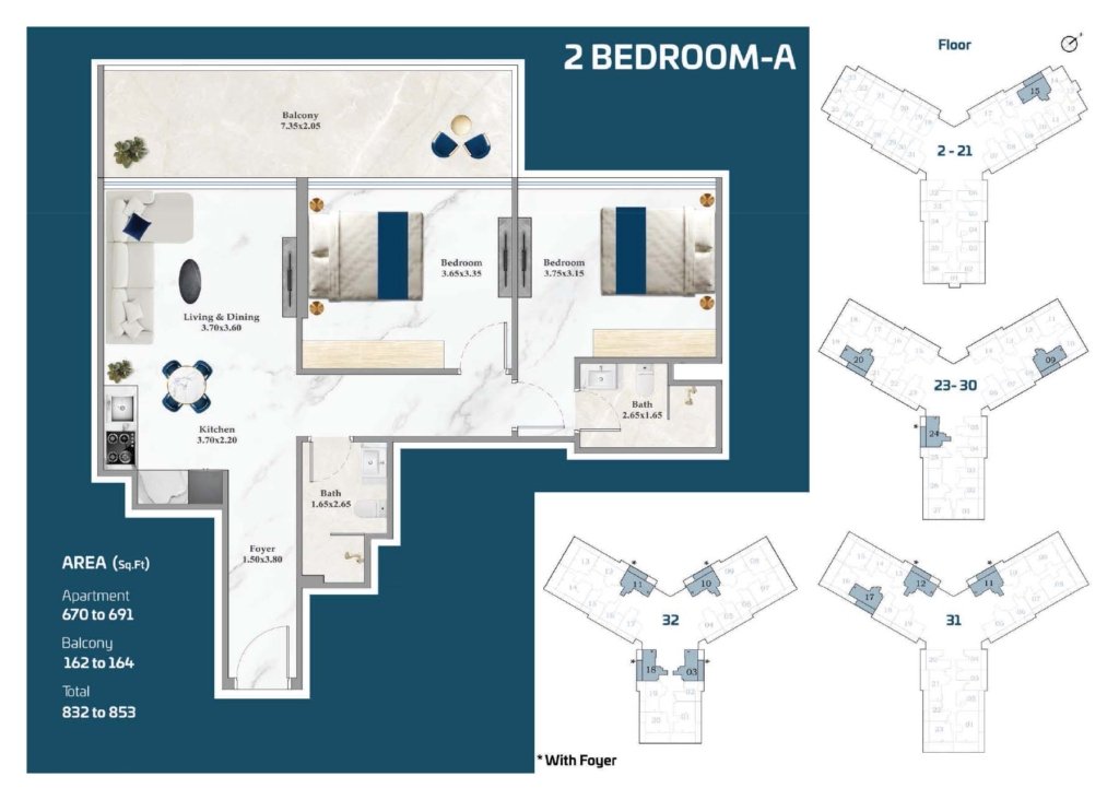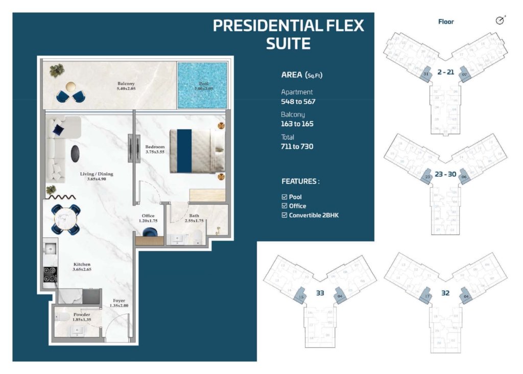 | Bedrooms | Studio, 1, 2, & 3 Bedroom |