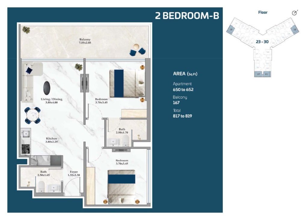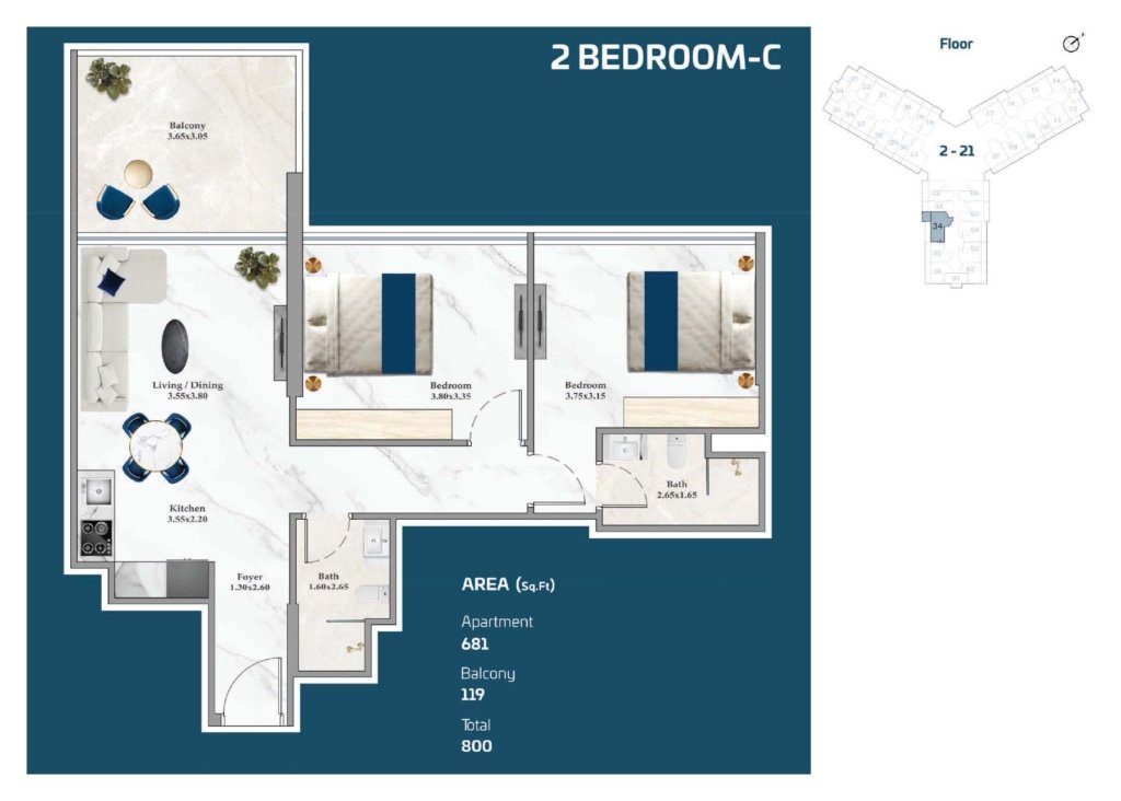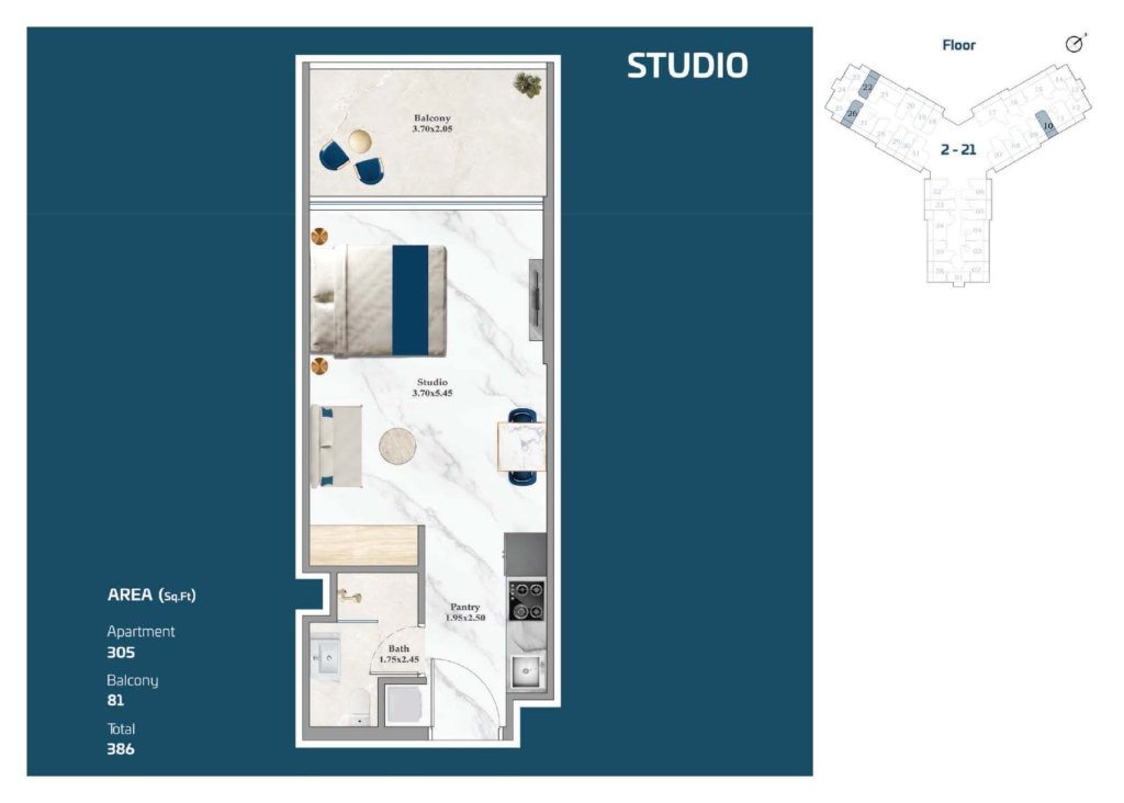 Featuring a well-designed floor plan at Timez by Danube Properties, the sizes of the homes range between 1,119 and 4,479 sq. ft. Additionally, the studio apartment size is from 386 to 1,419 sq. ft. The units offer maximum comfort and privacy. The homes are beautifully furnished with expansive layouts and smart home technology. There are large windows and charming balconies to enhance everyday living.
