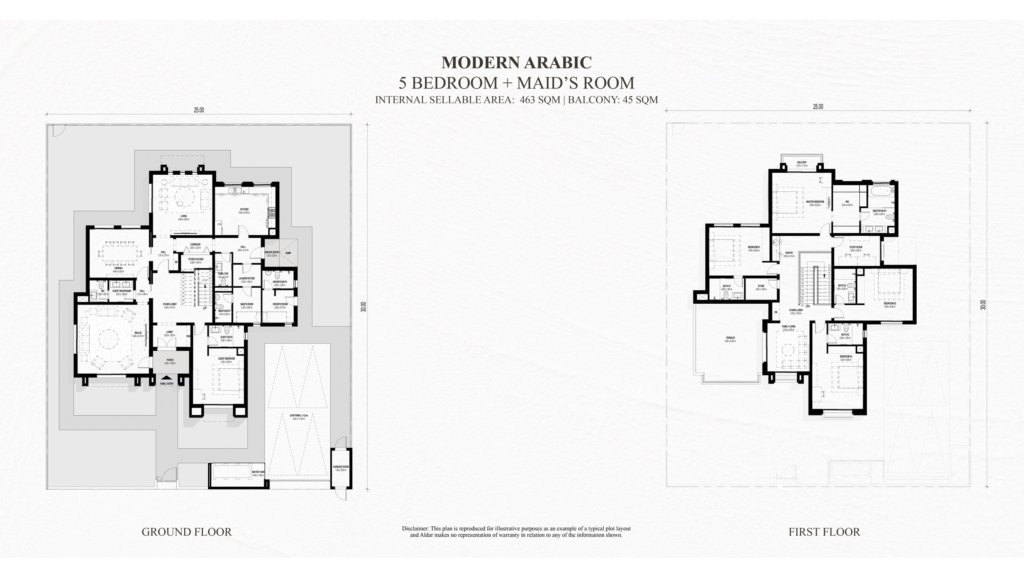 Fay Alreeman offers villas with three, four, five, and six bedrooms, available in various sizes and layouts. Each villa is equipped with high-end furnishings and fittings to create a comfortable living environment for its residents. To gain a thorough understanding of these residential villas, please review the floor plan layouts.