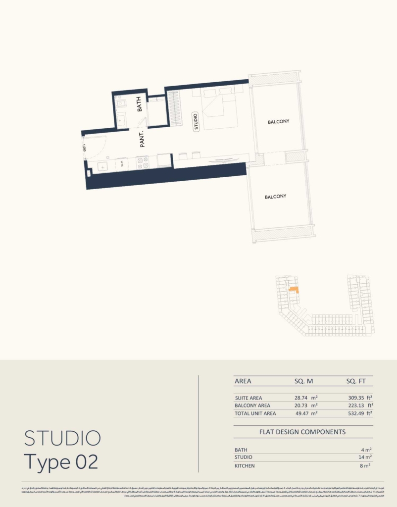 The Binghatti Elite floor plan offers a variety of layouts, such as studios, one-bedroom apartments, and luxuriously finished one-bedroom garden suites. The complex’s first-rate living areas ensure that every apartment features a spacious bedroom and high-end décor. The studios are designed with open floor plans that maximize the available space and are ideal for couples. The one-bedroom and garden suites offer large living areas with a separate terrace and outdoor space for pleasure and relaxation.