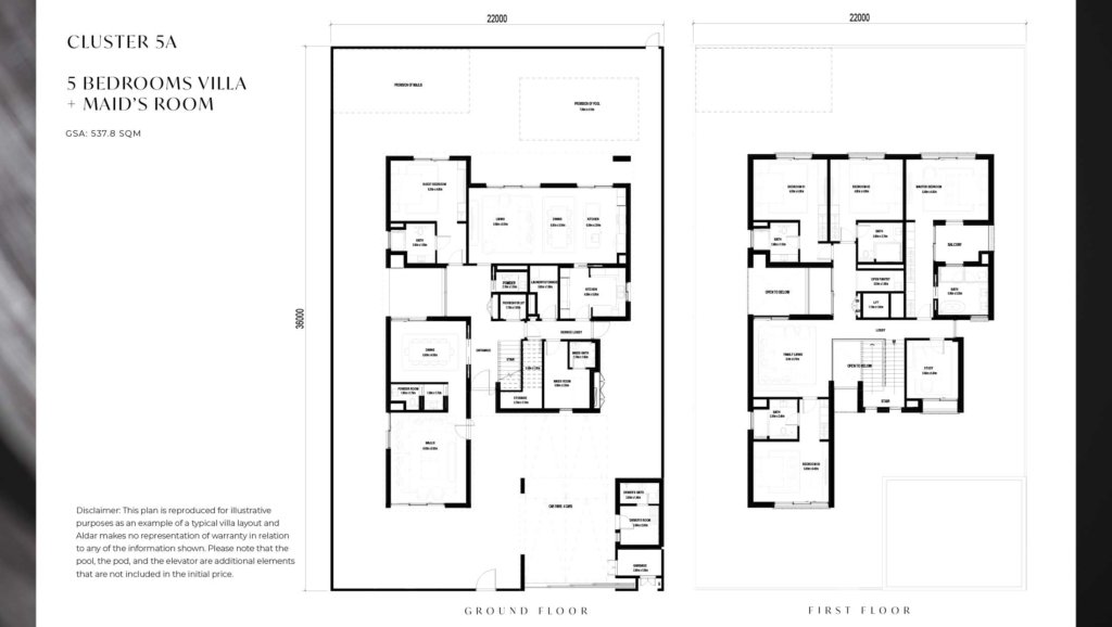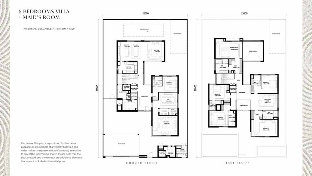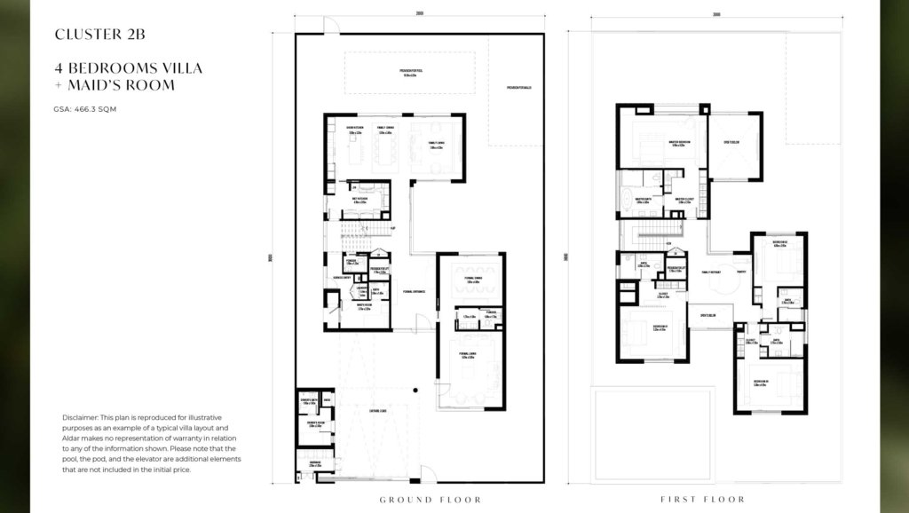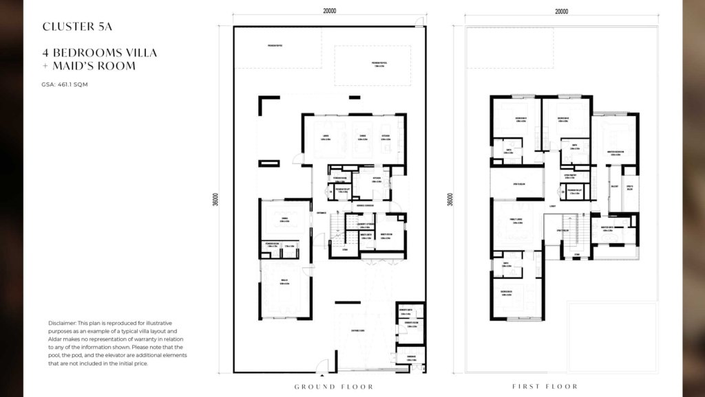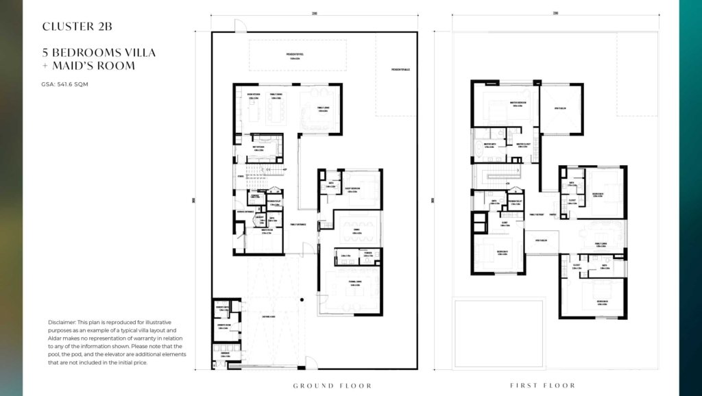 The floor plan of Saadiyat Lagoons Wilds features 4, 5 & 6 bedroom villas that experience luxury through practical living spaces in sustainable environments. The façade provides villa alternatives in multiple sizes to serve families of all types while allowing easy access to natural surroundings. The layout is well utilised and maximised for space and natural light.